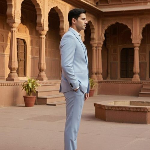 Mens Pastel Blue Tailored Formal Suit
