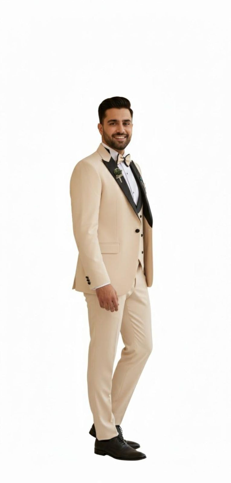 Mens Beige Slim Fit 3 Piece Wedding Tuxedo Suit