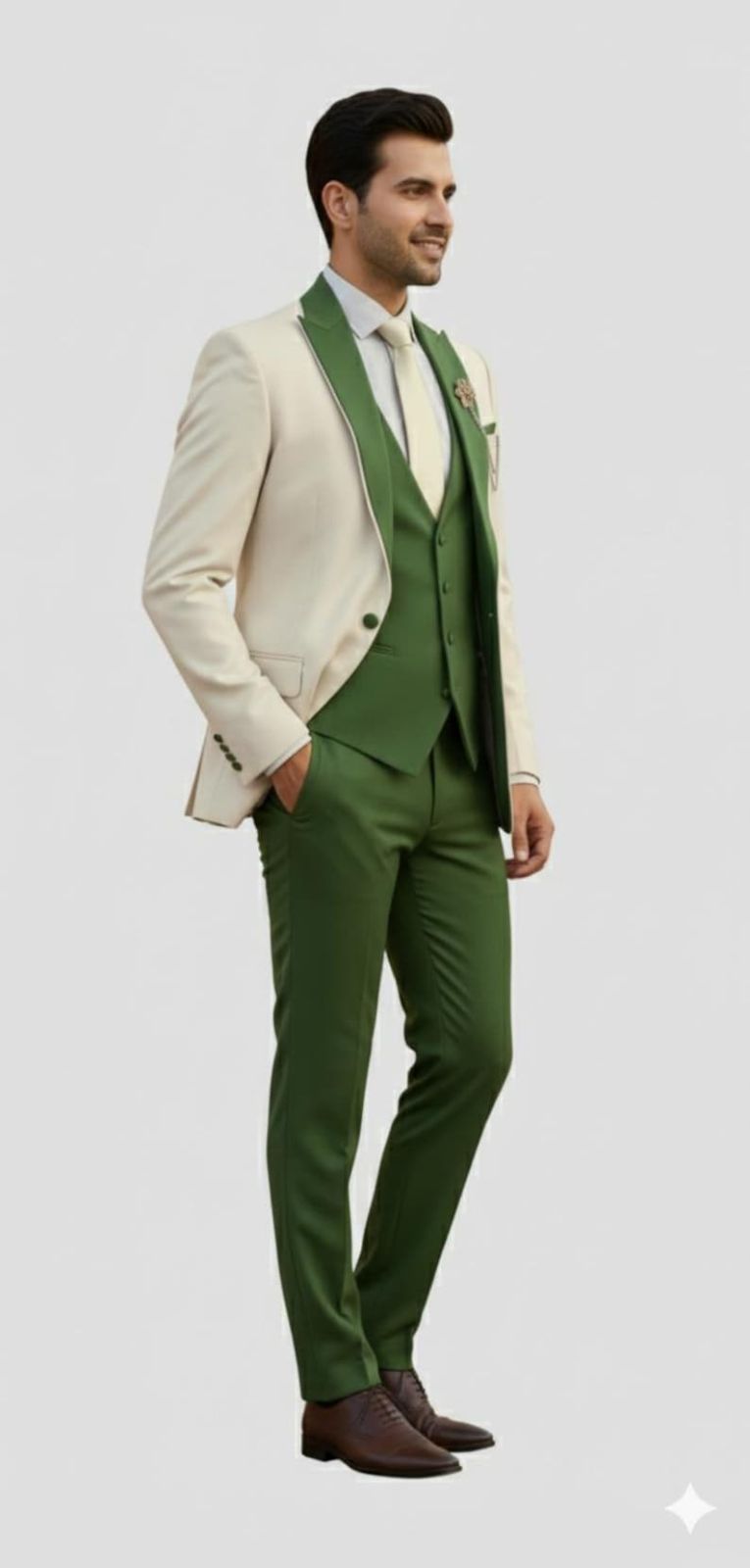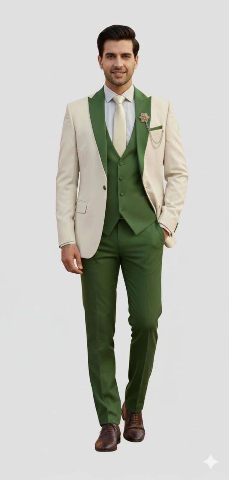 Mens Beige Slim Fit 3 Piece Groom Tuxedo Suit