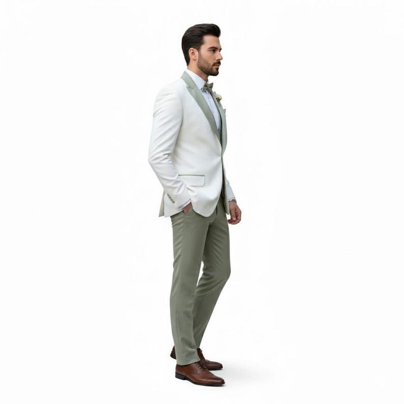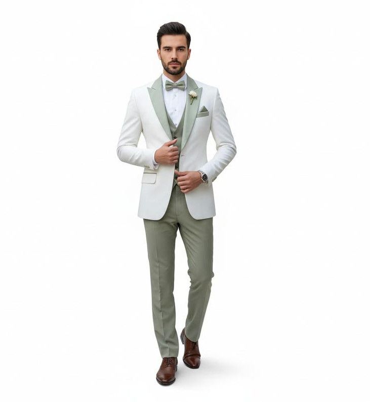 Mens Ivory 3 Piece Slim Fit Wedding Tuxedo Suit