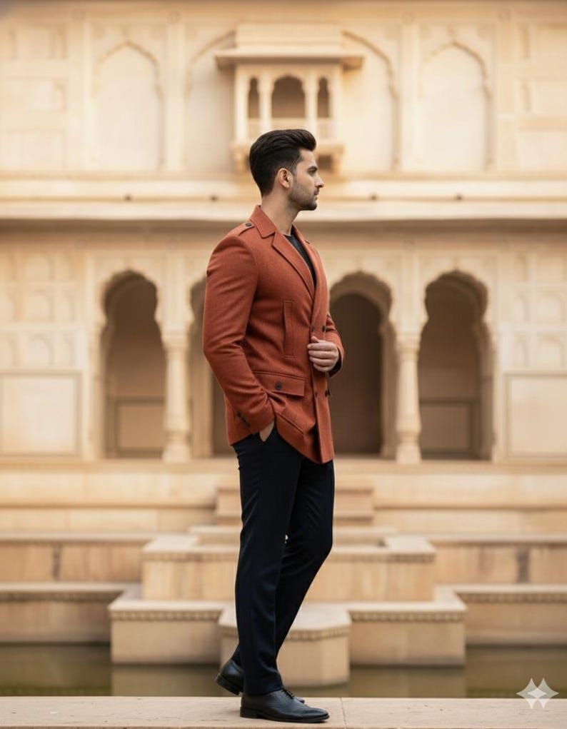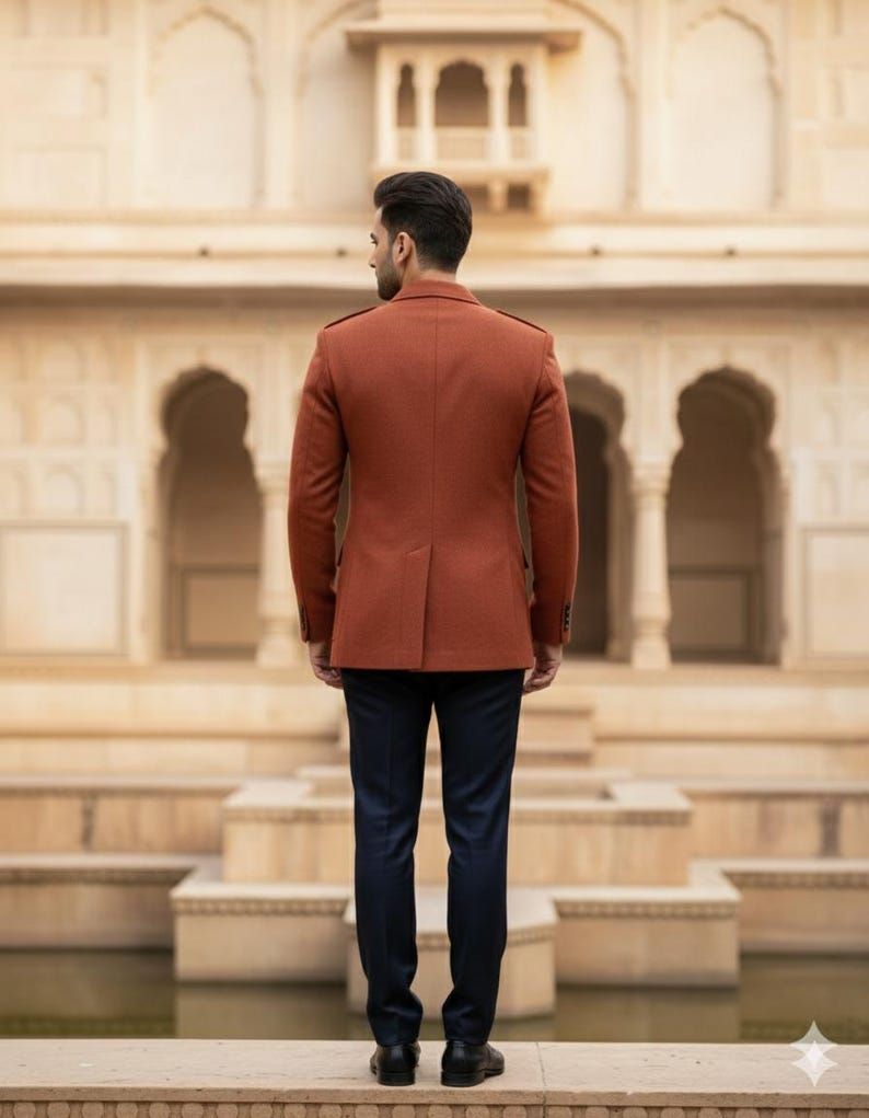 Mens Rust 2 Piece Double Breasted Utility Suit