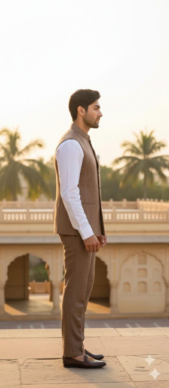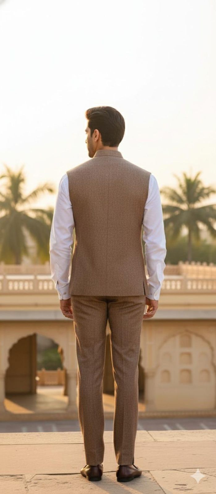 We are a leading manufacturer, exporter, and supplier of this sophisticated Mens Brown Textured Waistcoat Suit Set. Crafted from high-quality textured suiting fabric, this two-piece waistcoat suit features a slim fit design in a rich brown color, perfect for weddings. The waistcoat style includes a band collar or Nehru style with a button front closure, complemented by welt pockets and a pocket square. The set includes a waistcoat and trousers. Care instructions recommend dry clean only. Elevate your style with this elegant and modern waistcoat suit set.