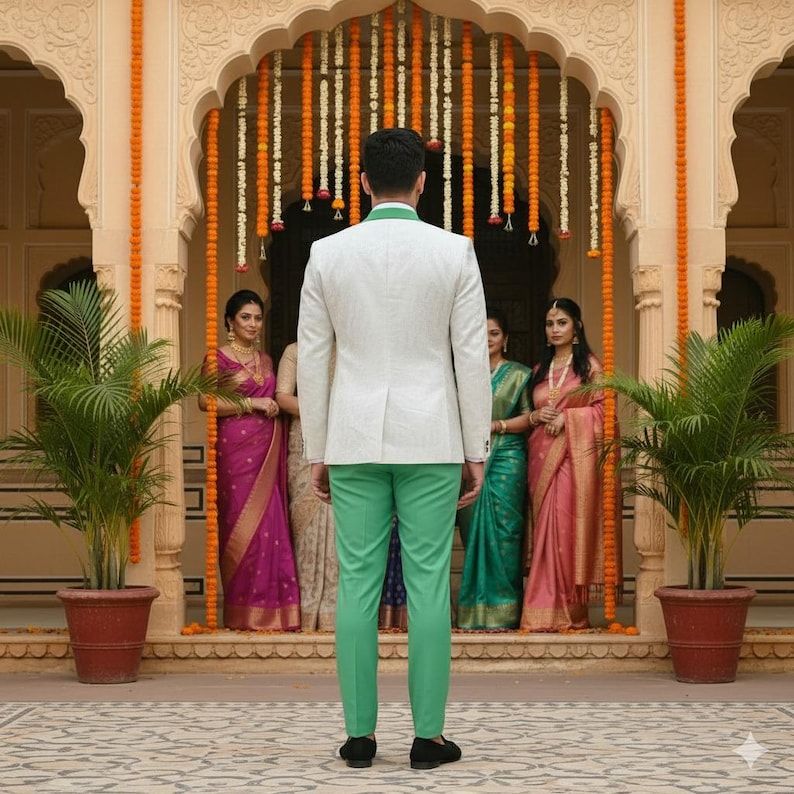 We offer a premium Mens Mint Green White 3 Piece Wedding Party Suit crafted from high-quality suiting fabric. This slim fit suit in mint green and white is perfect for wedding wear, featuring a solid pattern with contrast styling. The 3 piece suit set includes a single-breasted blazer with notched lapel and a single-breasted waistcoat. Ideal for manufacturers, exporters, and suppliers in the business category, this suit exudes elegance and style for any special occasion.