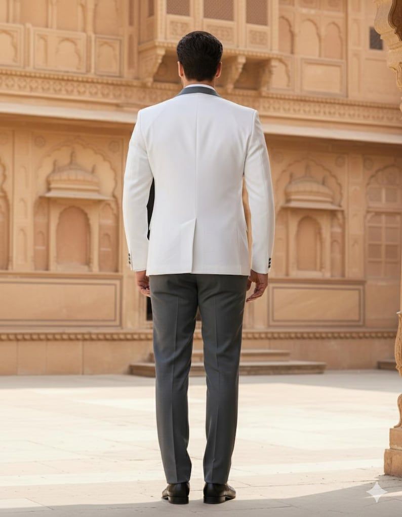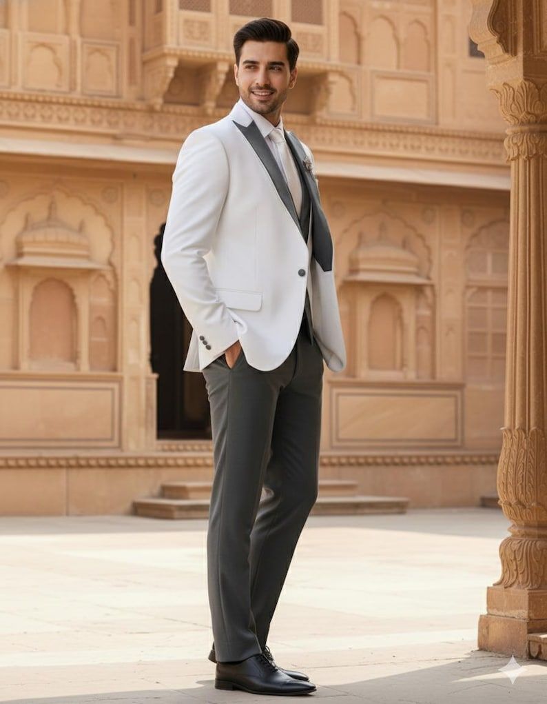 We offer a premium Mens White 3 Piece Wedding Tuxedo Suit crafted from high-quality suiting fabric in a sleek slim fit design. This elegant suit in white is perfect for wedding wear, featuring a solid pattern with contrast styling. The 3 piece suit set includes a single-breasted blazer with satin finish lapels and a matching waistcoat. Ideal for manufacturers, exporters, and suppliers looking to provide top-notch formal wear for special occasions.